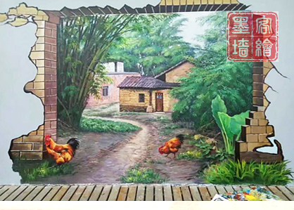 溫州市墨客墻繪藝術有限公司主要從事有個性有創意的家居裝飾墻繪、幼兒園卡通彩繪、KTV酒吧主題墻繪、3D立體墻繪、習哥彭姐文化大革命的城鄉文化宣傳墻繪等,當然還有我們獨歩武林的高墻墻繪藝術!畫高墻有時一個頭像就有兩米,不僅僅是大了型不好把握,一般習慣在陸地作戰的繪畫者往往上去后會讓你唱起一首歌:“三月里的小雨,淅瀝瀝瀝......瀝瀝……淅瀝瀝瀝下個不?!本褪谴魃夏虿粷?,他們也會在上面演示帕金森。我們施工時下面觀看的人如少女初戀般心跳,欣賞的人似紂王品酒觀妲己跳舞一樣陶醉。連村中惡犬也為我們搖尾吶喊:“……墨客墻繪……神勇無畏!
